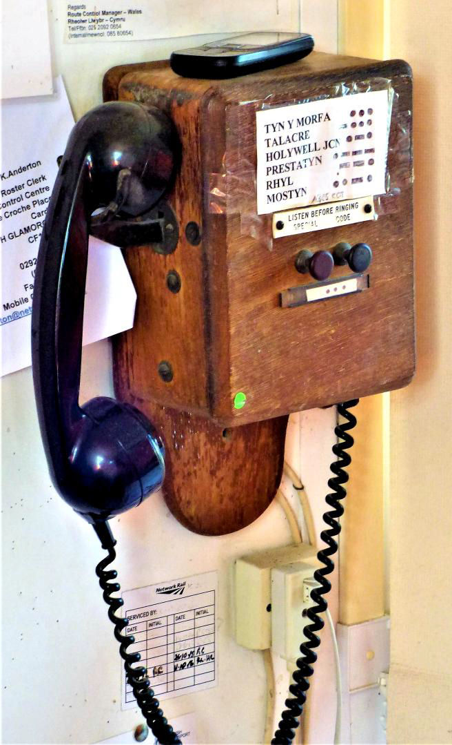 Tyn-y-Morfa crossing gate box. They don't make phones like that anymore! Maybe that is why it is sporting a green spot (the mobile phone on top doesn't have one).