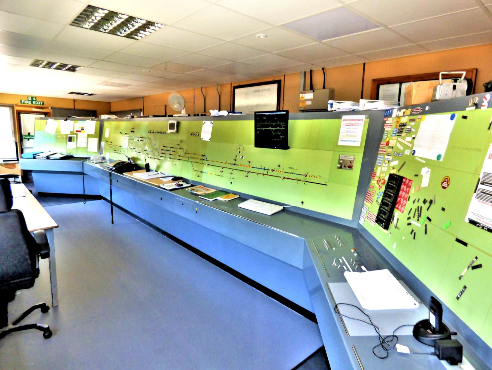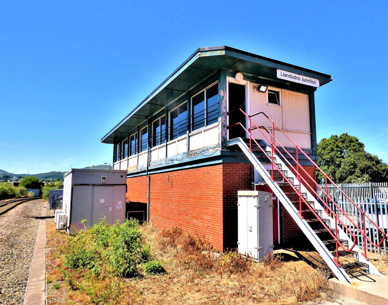 Llandudno Junction: The box is just off the Holyhead end of the station, before the actual junction for the Llandudno branchIt is a BR (London Midland Region) Type 15 flat roofed design commissioned in 1985. The lower section dates from 1980, constructed then as a relay room for the previous box, with the operating floor added about 1983 from second hand Type 15 components (BR were very good at recycling). Inside is a 1983 'stand up' style 'N-X' Entrance/Exit Panel with buttons on the panel but no train headcode displays. These are gleaned from computer screens dotted about the floor. The box is open continuously under three shifts. Since the Easter partial resignalling of the North Wales Coast line, the Junction works to Cardiff ROC at the eastern end and to Penmaenmawr (or when switched out - usually overnight - Bangor) to the west. The Junction box took control from Colwyn Bay in 1991.