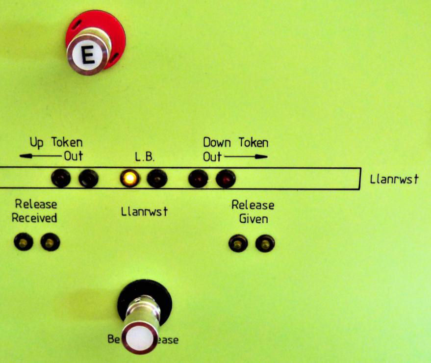 The Conwy Valley branch to Blaenau Ffestiniog is token operated to Llanrwst. As Junction box is at the wrong end of the station to issue tokens to drivers, the token machine is in the station building; station staff withdraw and replace tokens. 'Requesting' and 'accepting' on the signalling equipment is still carried out by the Signallers, with confirmation to the station staff via walkie-talkie radios.