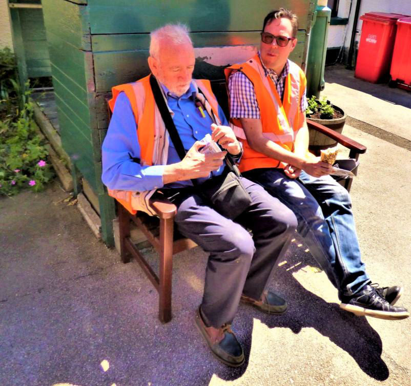 Not many people know this, but signal box visiting is surprisingly hungry work. On the left is the well travelled Angus McDougall and to the right is the fixture organiser, Barney Clark, both flagging a bit and signalling time for lunch.