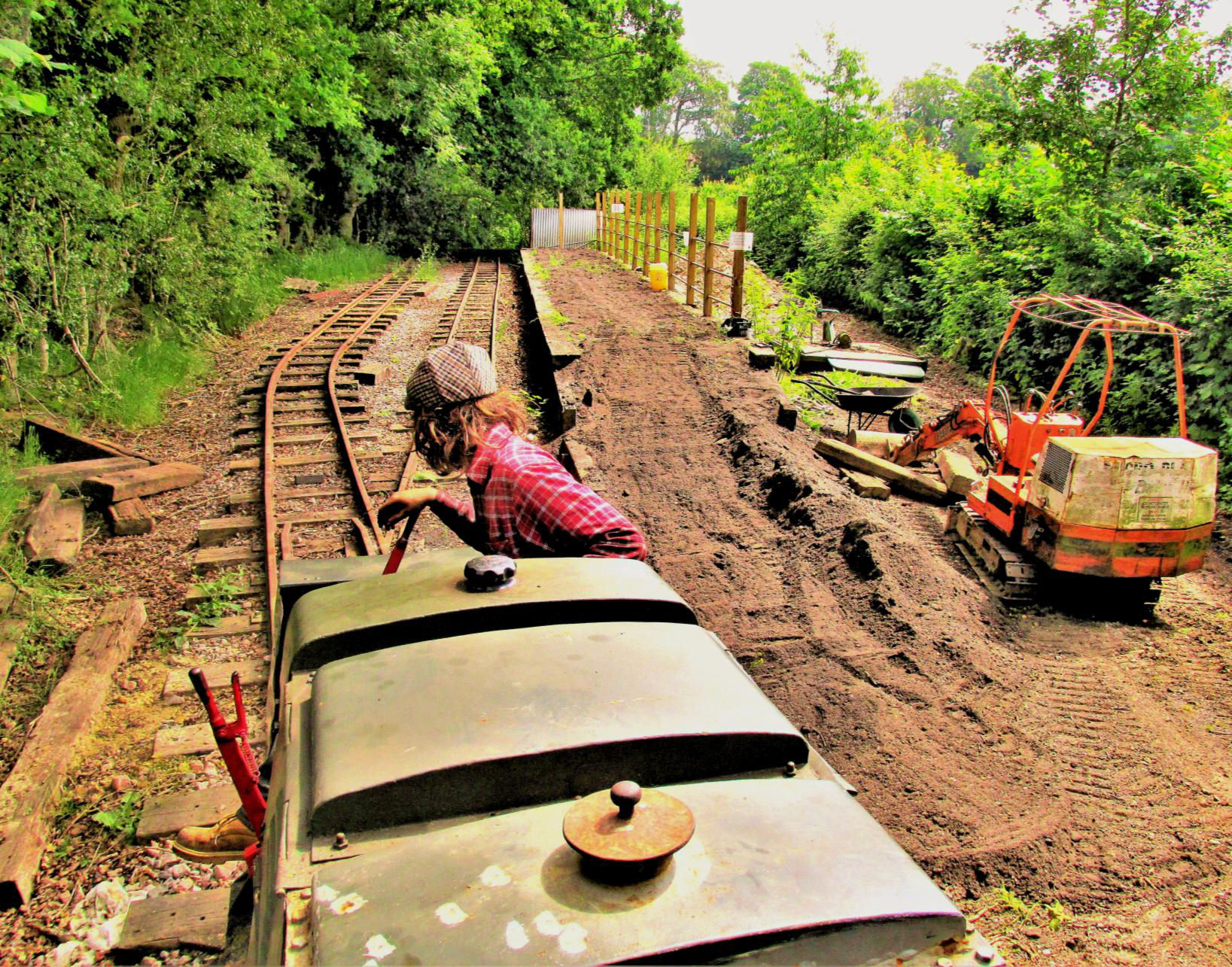 The loop here has been extended westwards with the connecting crossover moved to just east of the level crossing by the Organ Museum. Our tour took the new loop slowly and cautiously (as it was very new track and yet to be ballasted) passing the proposed site of the new Organ Halt, replacing the original one removed as the loop now passes over the former platform, before rejoining the main line.