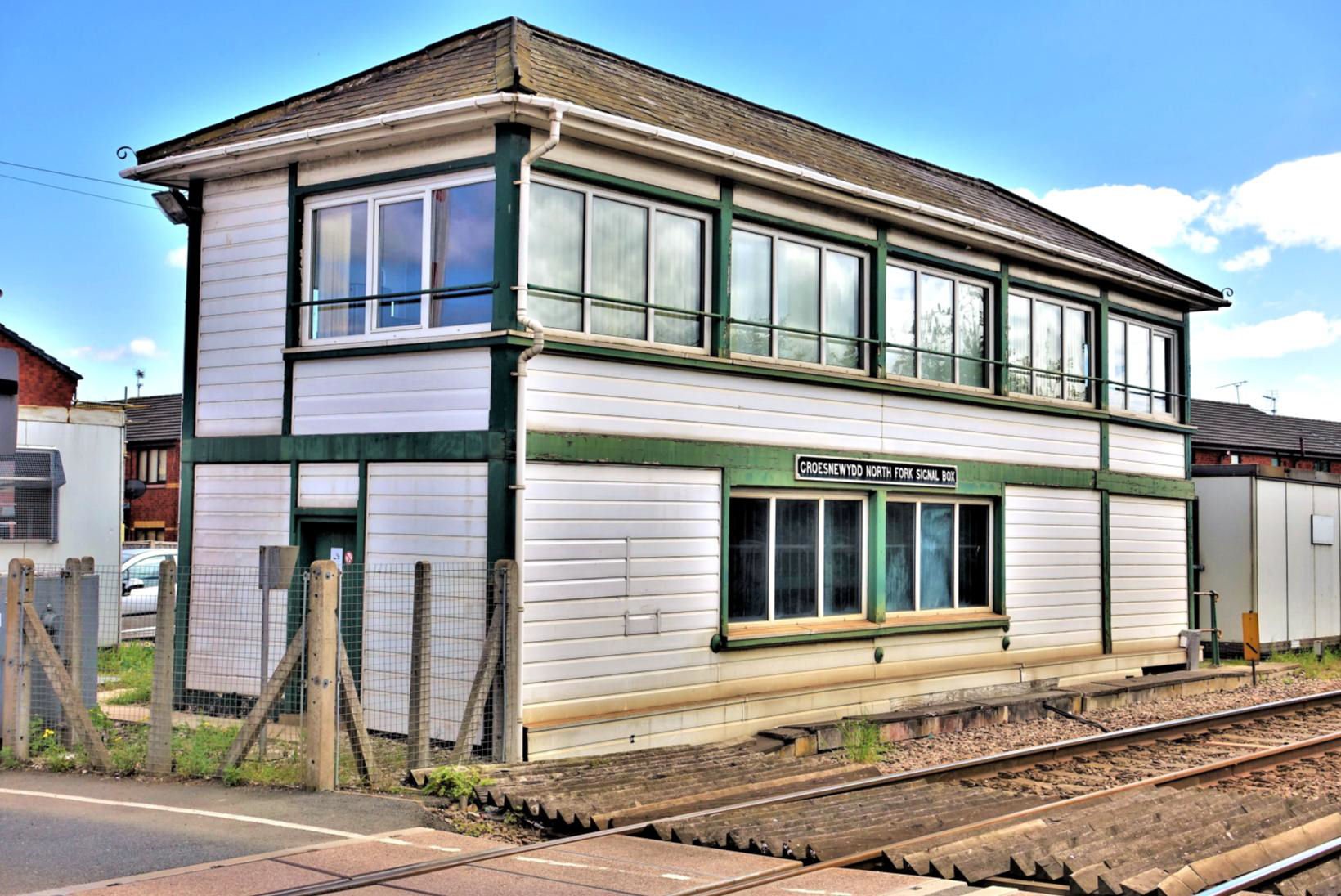 Croes Newydd North Fork Signalbox (201m 43ch) is at a level crossing on the Shrewsbury - Chester line south of Wrexham General. It is of Great Western Railway design, built in 1905 and extended in 1940. A modern 'NX' panel was installed with refurbishment in 2009, controlling a relay interlocking. As well as the main line, the box controls the south end of the Bidston - Wrexham line, including the single track Wrexham Central line. There is absolute block working to Gobowen and Penyffordd, and track circuit block working to Chester PSB with a modern train describer. The interface with Chester is on the remaining stretch of single line, over which Chester has control of the direction of traffic, but the train describer gives the signaller good advance warning of approaching trains as soon as they have left Chester. An unusual feature of the absolute block working on the Bidston line is that the trains are never in sight of the signaller and so the conductor of an arriving train has to telephone to report that the train is complete before the signaller can give 'train out of section' to Penyffordd. The Kronospan siding at Chirk is in the absolute block section to Gobowen, so an incoming loaded timber train has to be offered to Gobowen and then cancelled once it has set back into the siding.