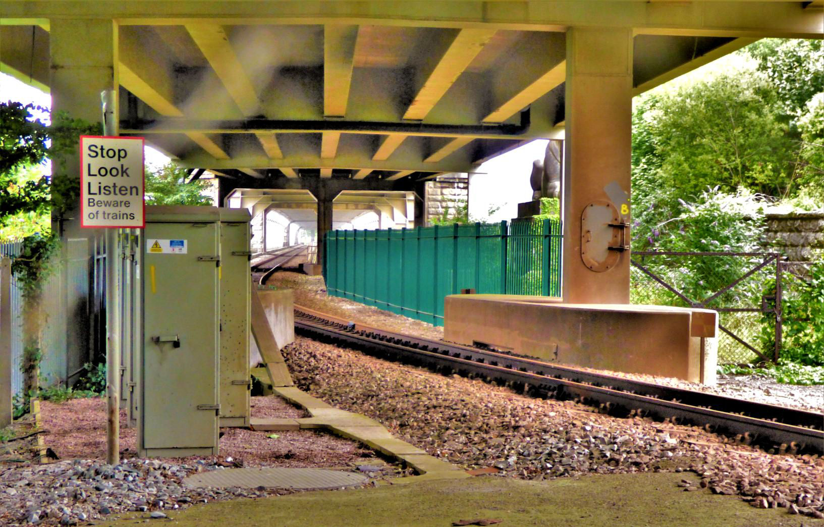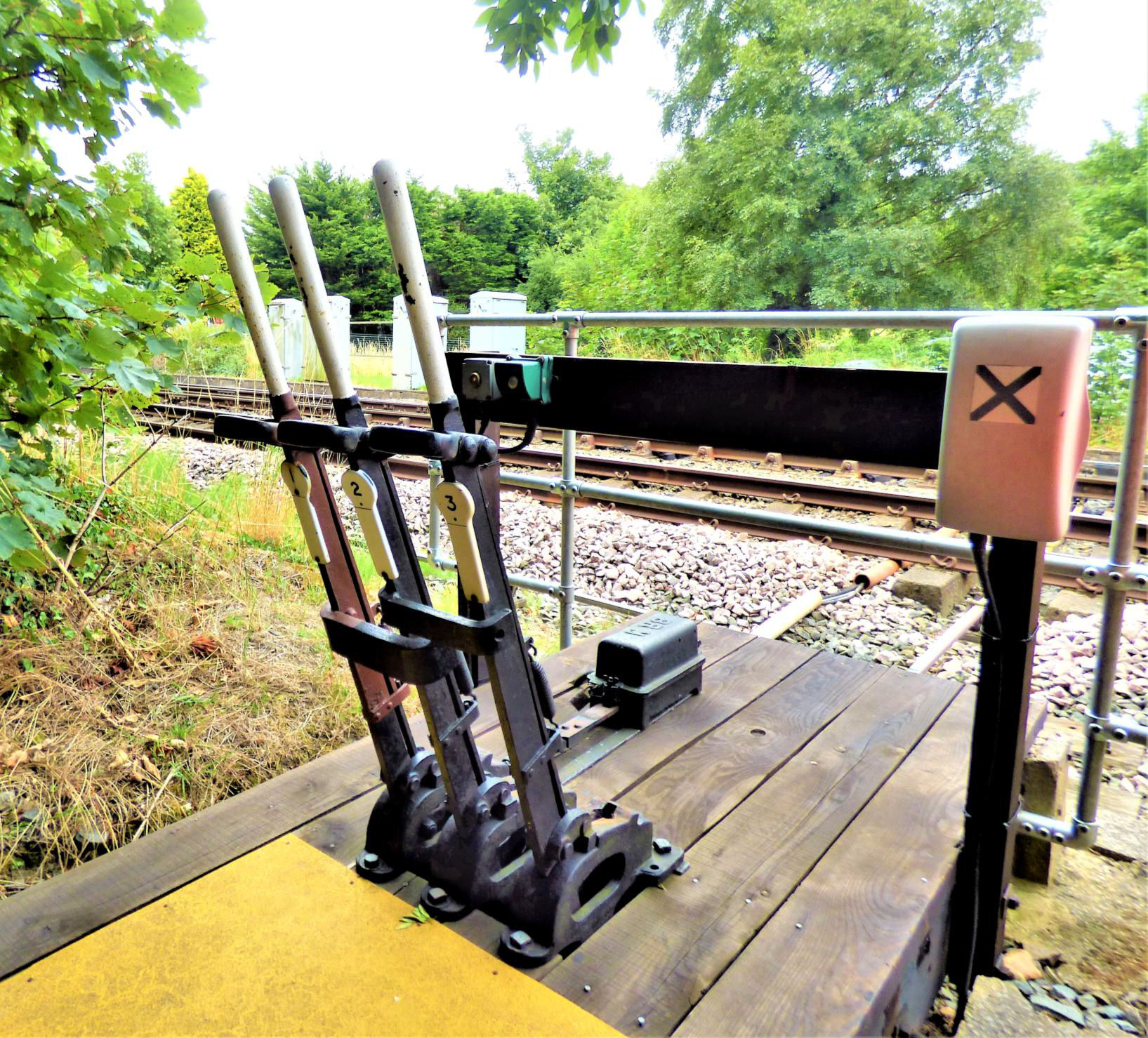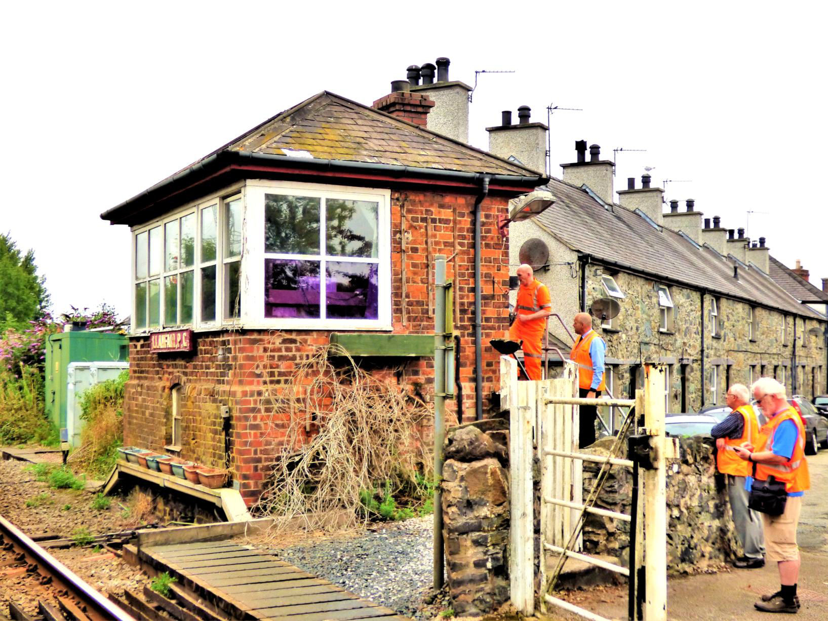 We next went to Aber emergency ground frame, near the village of Abergwyngregyn. This has three levers: one is a release lever and the other two control each end of the trailing crossover. It is regularly tested weekly. There is a small cabin with telephone on the opposite side of the line, and the original station building (somewhat modified) is nearby.