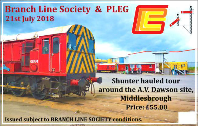 On a very pleasant day in Middlesbrough (no, seriously) I arrived at AV Dawson's on Depot Rd. The 10.00 railtour was just about to cross returning from the North Sea Supply Base Wharf. There were numerous photographers taking advantage of the proceedings with some rather bemused road users waiting patiently; they seemed understanding. I gave my details to David Russell, the BLS steward. He registered my attendance and gave me a Jim Sellens masterpiece ticket in return. David also mentioned an '00 gauge' special Class 08 in RSS livery (£150 reserve - it sold) and a cab ride on a first come basis for £40 with all proceeds to AV Dawson's chosen charity, the Middlesbrough and Teesside Philanthropic Foundation.