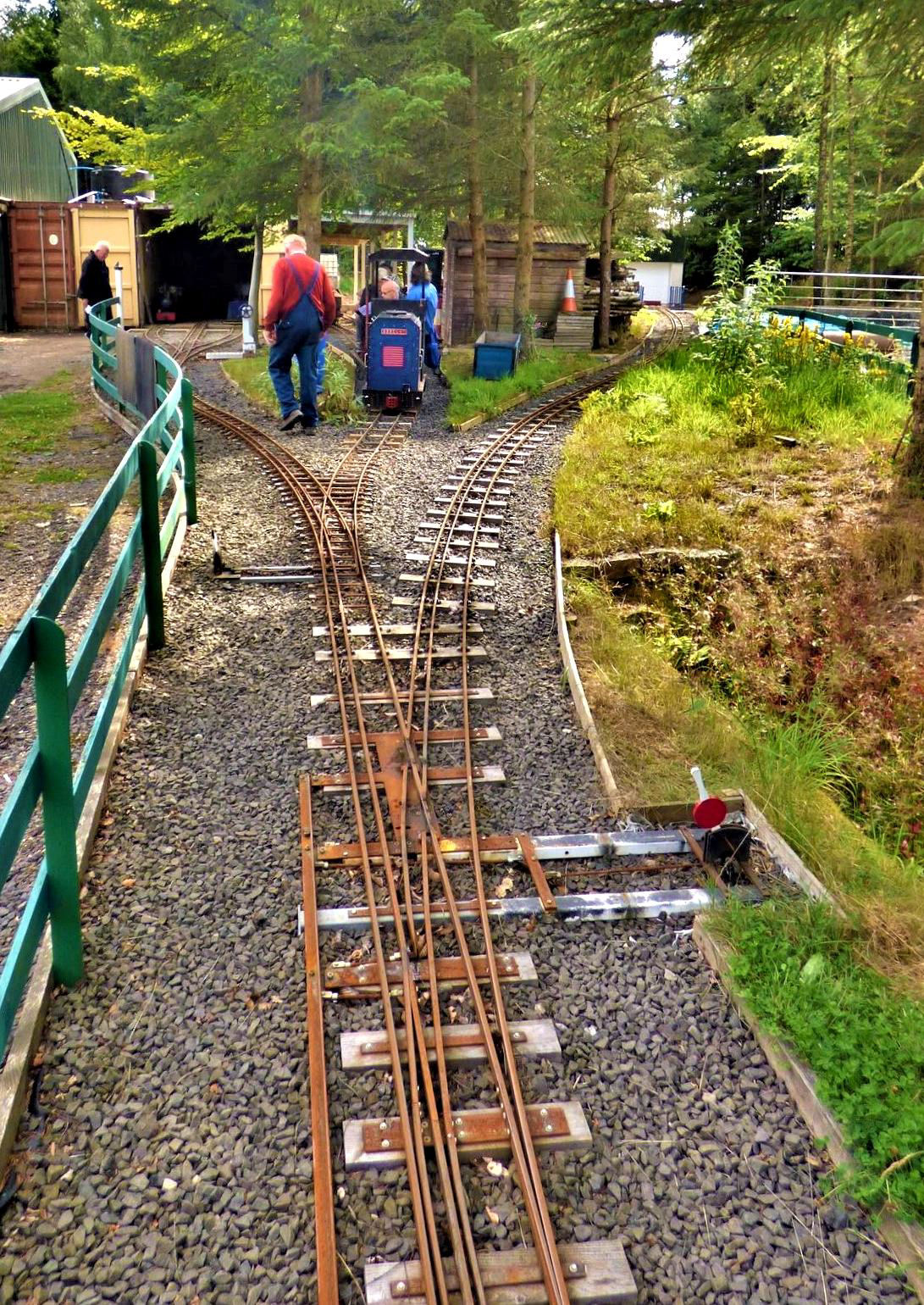 Permissive working, all three trains can be (just) seen in this shot. Many miniature railways seem to feature woodlands and very delightful they are too.