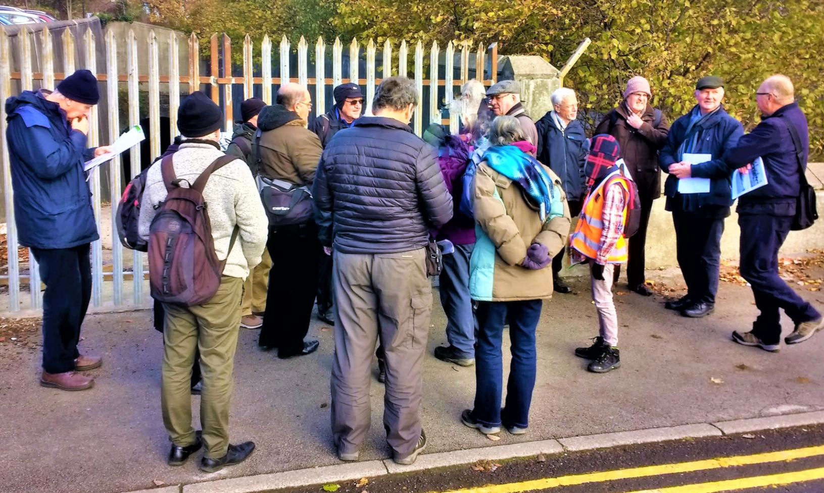 17 Society members gathered at Chesterfield (Midland) station on a beautiful crisp morning to be met by our guide for day, Neil Lewis, a local member brought up in the area and with much detailed knowledge of the current situation and the way things used to be. Chesterfield is a fascinating town; three companies built railway stations and goods facilities, with a further branch line serving mines, factories and mills. We looked forward to tracing the remains of each. Several maps were handed out for us to follow, and Neil had an album of old photographs, which proved fascinating as we tried to recreate the locations.