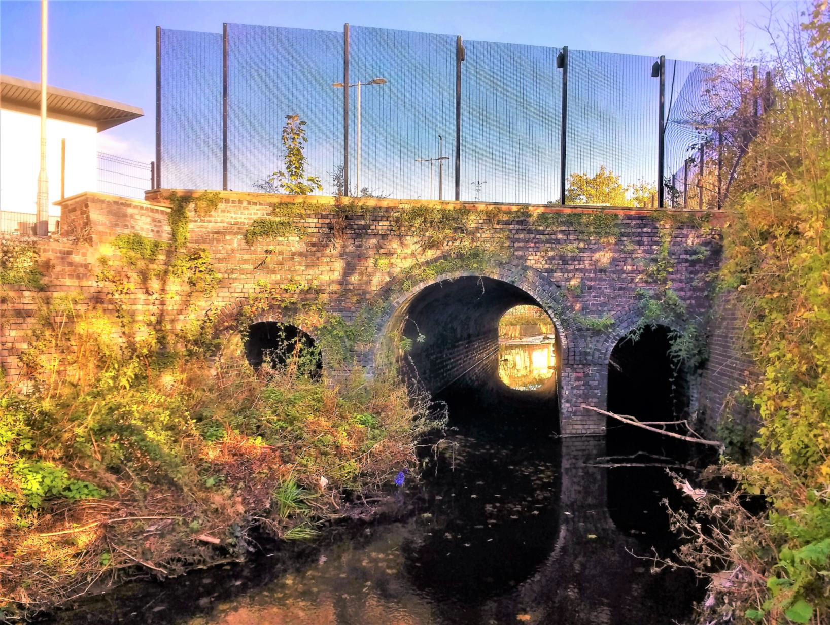Neil took us by the impressive Town Hall (a similar design to Stormont in Belfast) and the Grade II listed (empty) Court House to find the remains of the Brampton branch. It was once extensive, serving many factories, mines and breweries and, at this point, the Gas Works. At the entrance where the railway crossed the road there is a fine piece of metalwork. A plaque marks where chains were placed across the road (pulled through worn holes in the walls still there) to stop road traffic for trains to run.