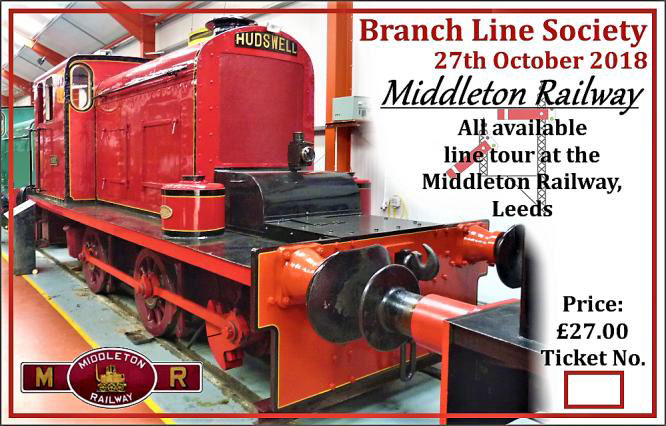 Among the various fixtures tied in with the Society's 2018 Leeds AGM was an all morning 'All Line Tour' of the Middleton Railway, our eighth visit here. [The AGM Final Notice details them all.] The day began in the line's excellent café, where, as well as tea/ coffee and biscuits, tour patrons who arrived in sufficient time had a hot sausage or bacon roll. [Miles & tickets are thanks to Uncle Jim Sellens.]
