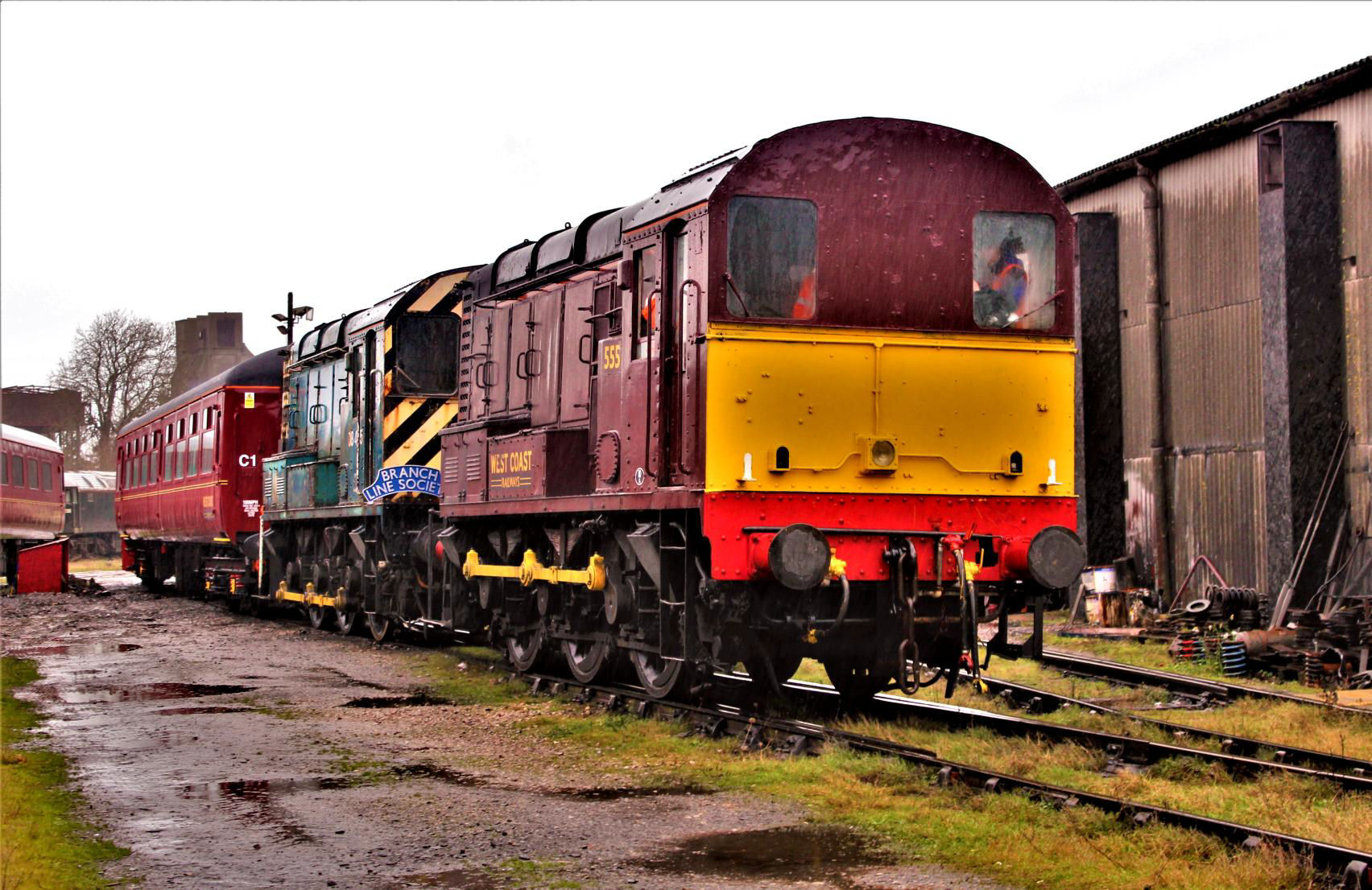 03196 leading beside the Carriage Storage Shed with 08485 having been joined by 08678 displaying number 555 on its cabside. Taken by Paul Illingworth and approved for BLN publication by WCR.