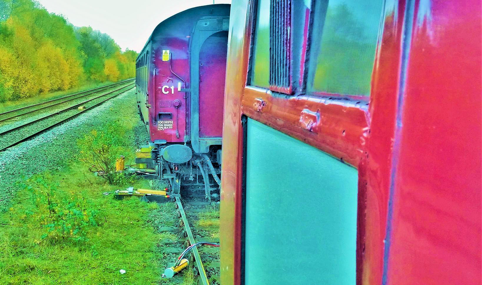 Of note, the derailment occurred during the charity raffle and it was decided to continue with it. The response from the 220 aboard was magnificent and (with other fund raising) an impressive £1,025 was donated to support the Merseyside & Cheshire Blood Bikes volunteers. [Merseyrail's charity in its Ruby anniversary year, hence the 'Ruby Vampire' tour name which puzzled some.] Many positive and supportive messages were received following the tour from participants praising the way the situation was handled, including the parts played by our Tour Manager and stewards. The understanding and calm response of our participants was also noteworthy (for one it was his third such event on railtours) and actually some very interesting rare track was covered before the derailment.