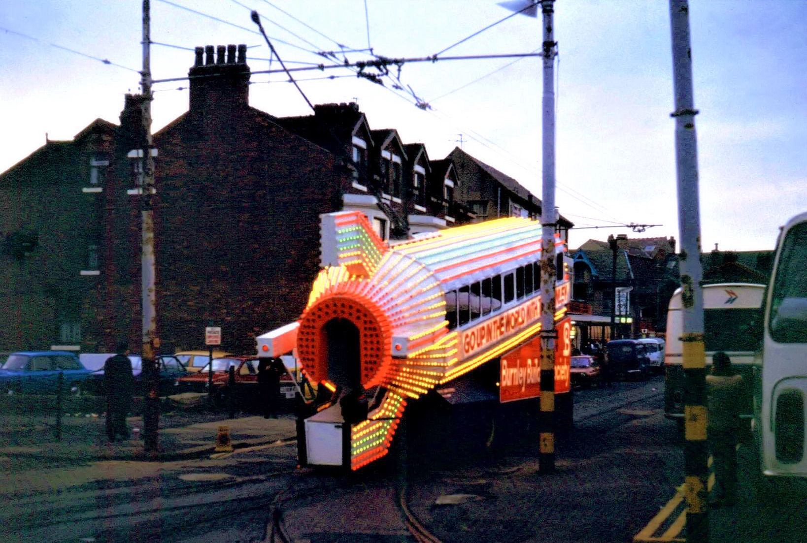 Decrepit Engineering Car No7 was kept on the former third side of the triangle from the Little Bispham turning circle (seen left) towards Fleetwood, now lifted. (3 Oct 1981)