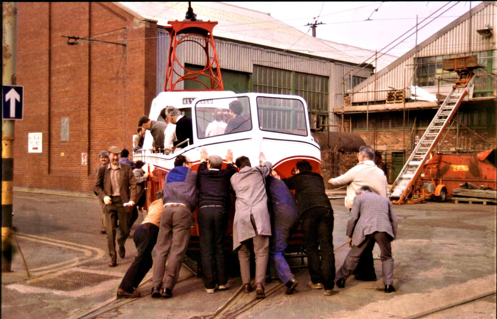 roadblock on Rigby Road while reversing. '754' then propelled the tour back and onto the depot before being detached, which allowed a traction change, into a sort of tram replacement road service...