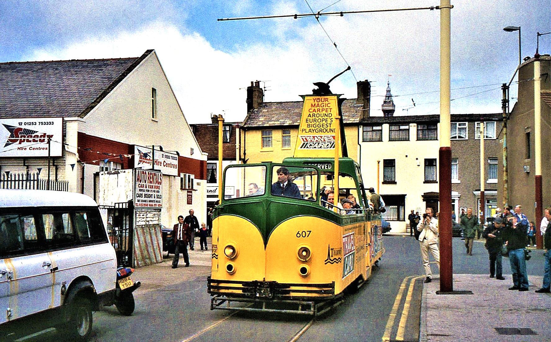Tram '607' on the now disused and de-wired Blundell Street section, near the junction with Princess Street when the rare depot loop line was done, bringing out photographers on 28 Jun 1998.