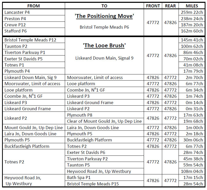 The trip the day before (BLN 1325.764), also with an apt name 'The Positioning Move', ran from Lancaster to Bristol using the stock as a railtour instead of just an ECS run.