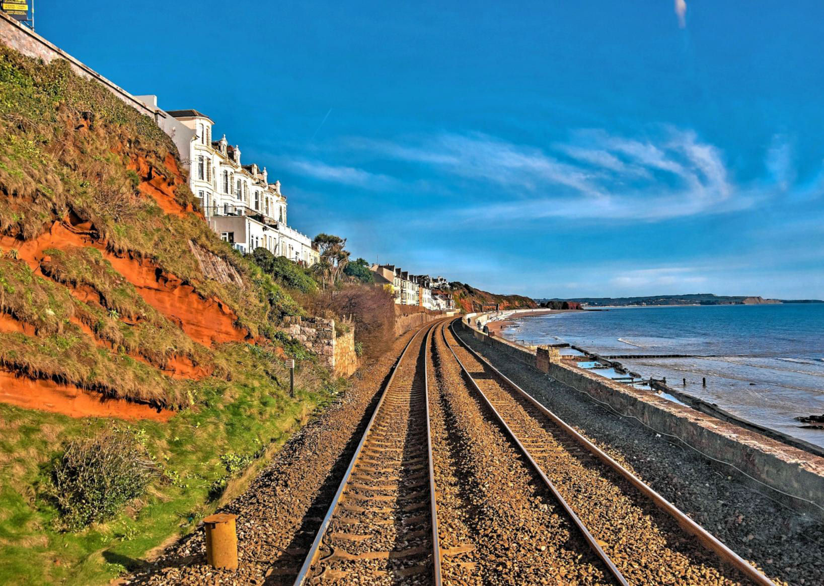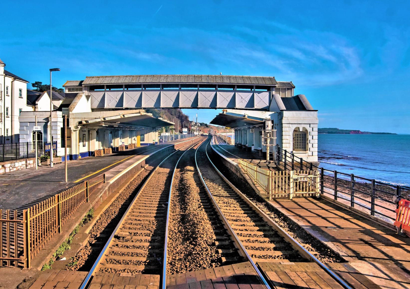 I was hoping our late running wasn't going to affect the next highlight which blocks both Up and Down Main lines at Dawlish. I breathed a sigh of relief as we slowed at Dawlish Warren to cross (204m 55ch) to the bidirectional Up Main, crossing back (209m 10ch) to the Down at Teignmouth. The Up line here is used for single line running during engineering works or when the sea breaches the sea wall. [However, even at 90yd every two months, few of us would live long enough to travel over it all.]