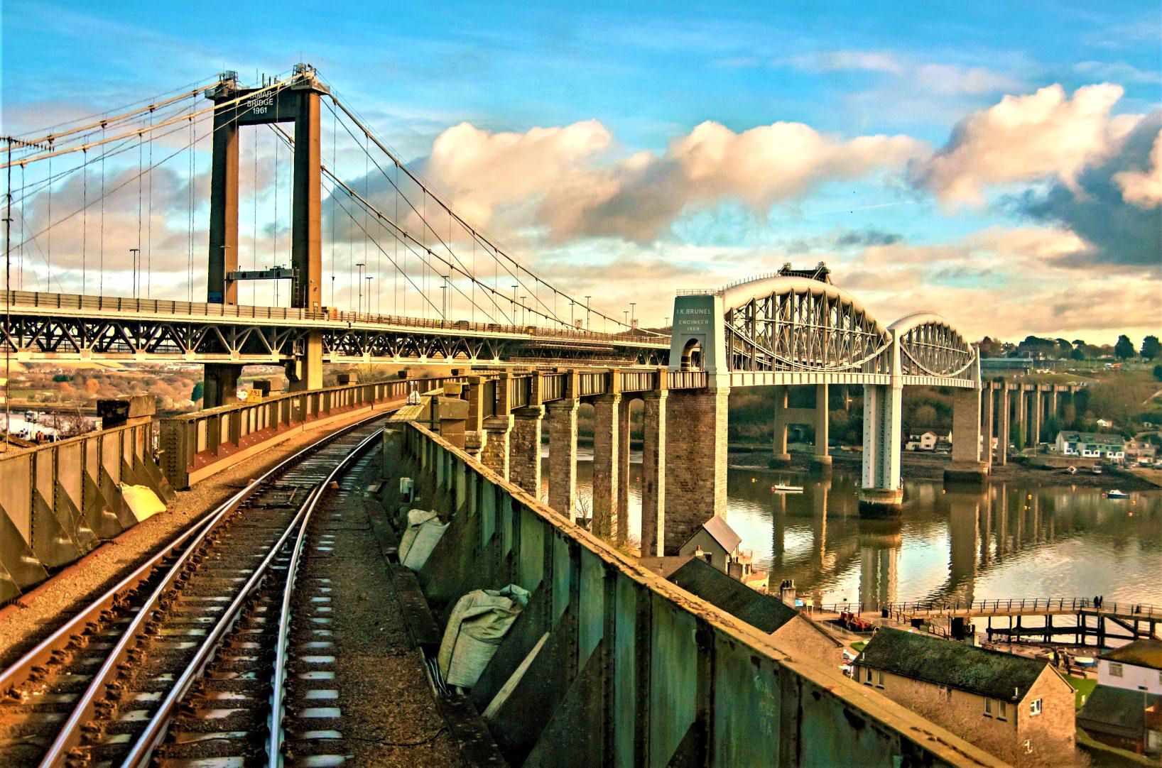 After crossing the Royal Albert Bridge above the river Tamar and running into Cornwall.