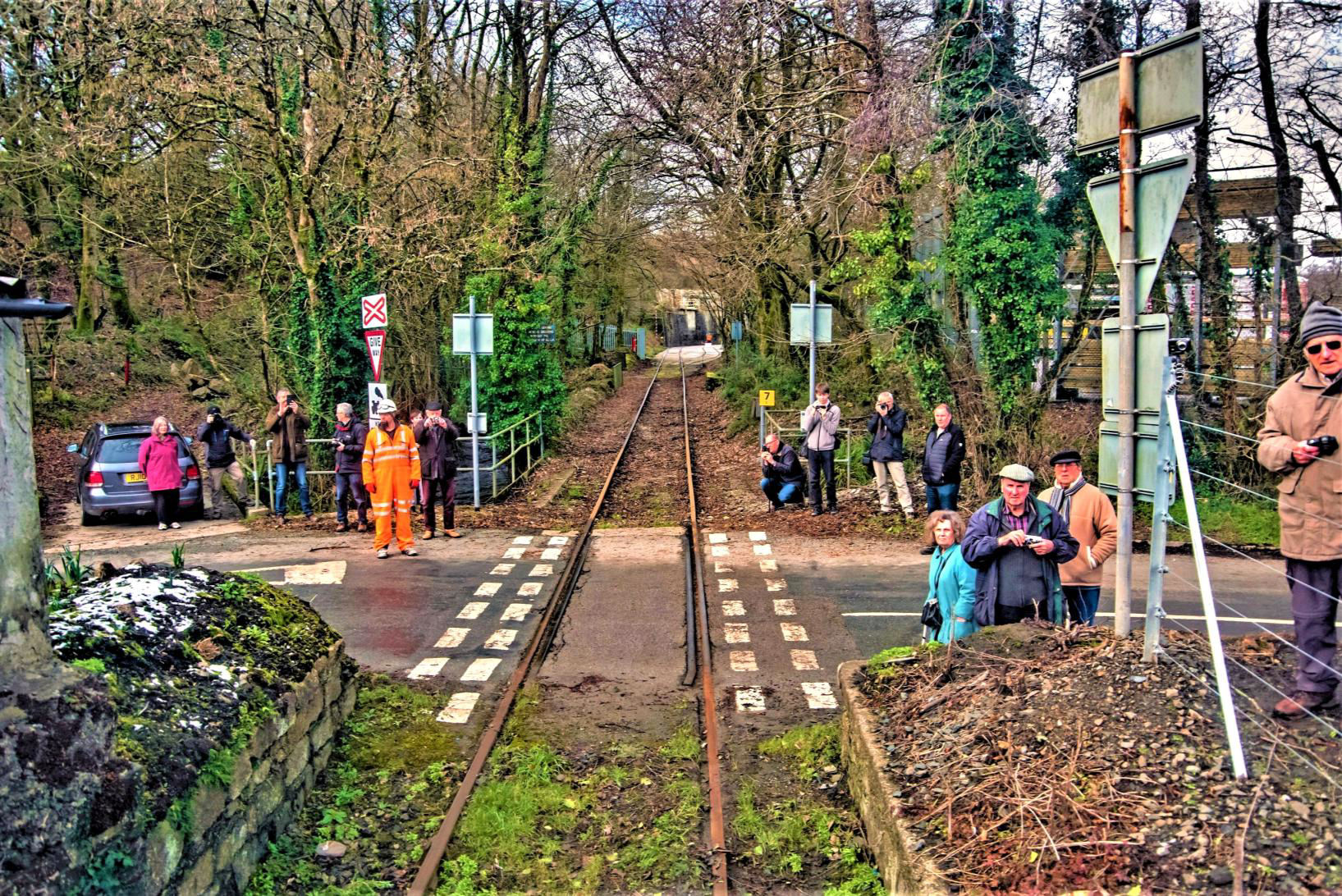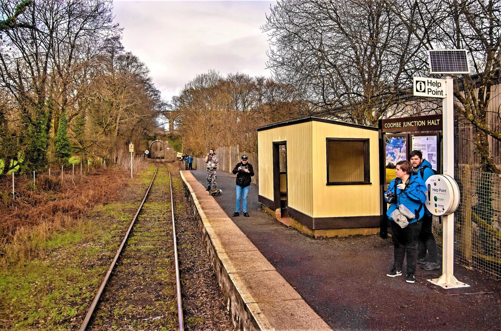 Passing Coombe Junction Halt, it's not often there are this many people on the platform