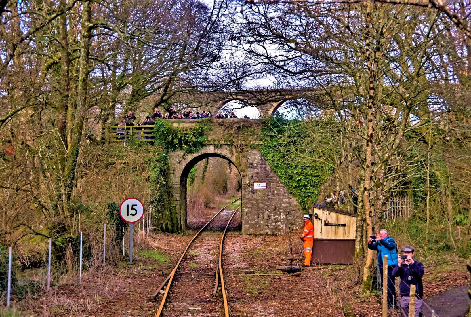 With everyone fed and watered, the train returned to Liskeard this time in to bay P3. Participants (at least those who are unidirectional) had the choice of alighting to take photos and make videos of the manoeuvre back to P2 via the connecting line where they could rejoin. Quite a few did, as the rare connection was done again, and Kev Adlam's off-train video is available on our Facebook pages.
