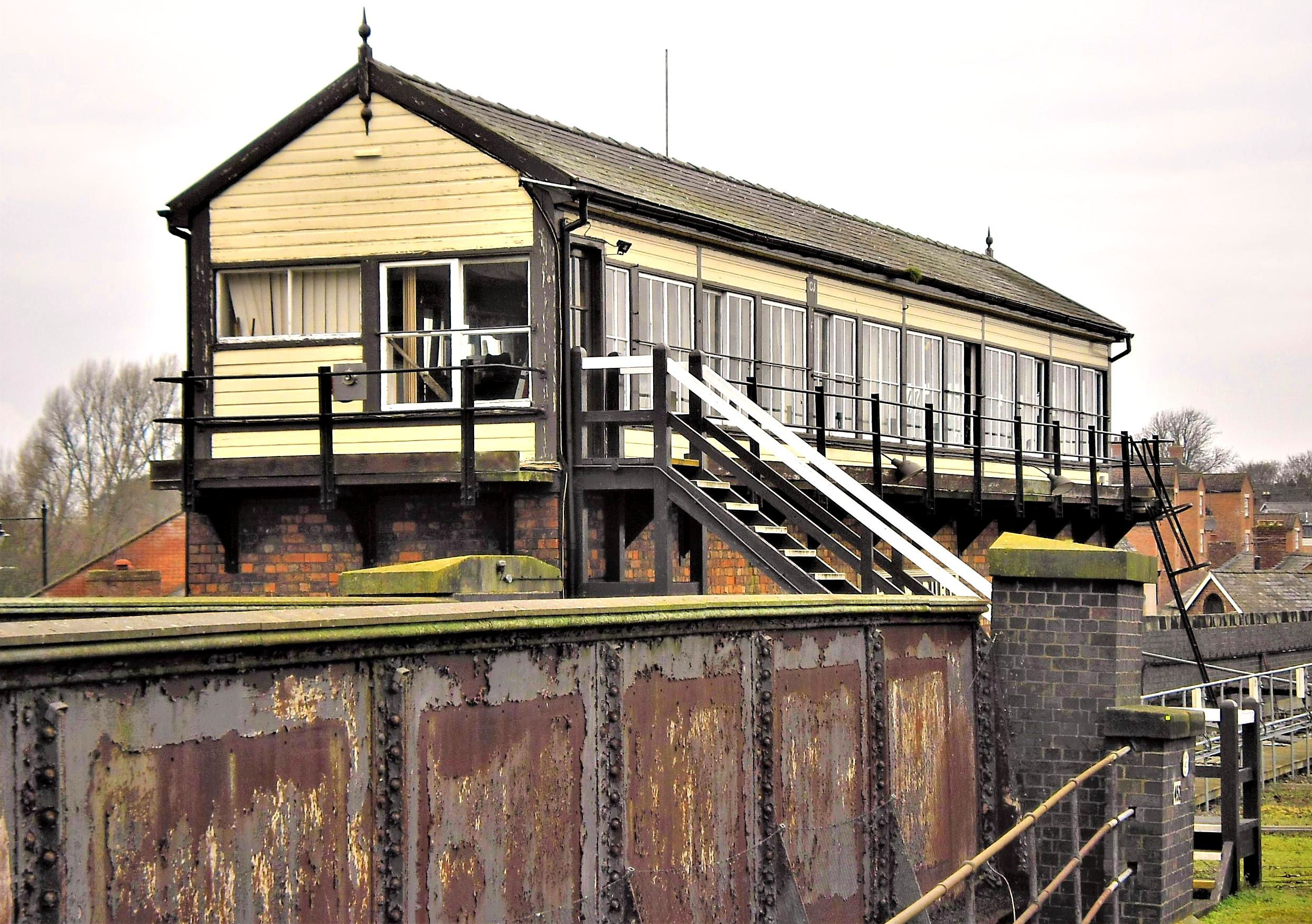 Crewe Junction Signal Box exterior as seen from Shrewsbury P3.