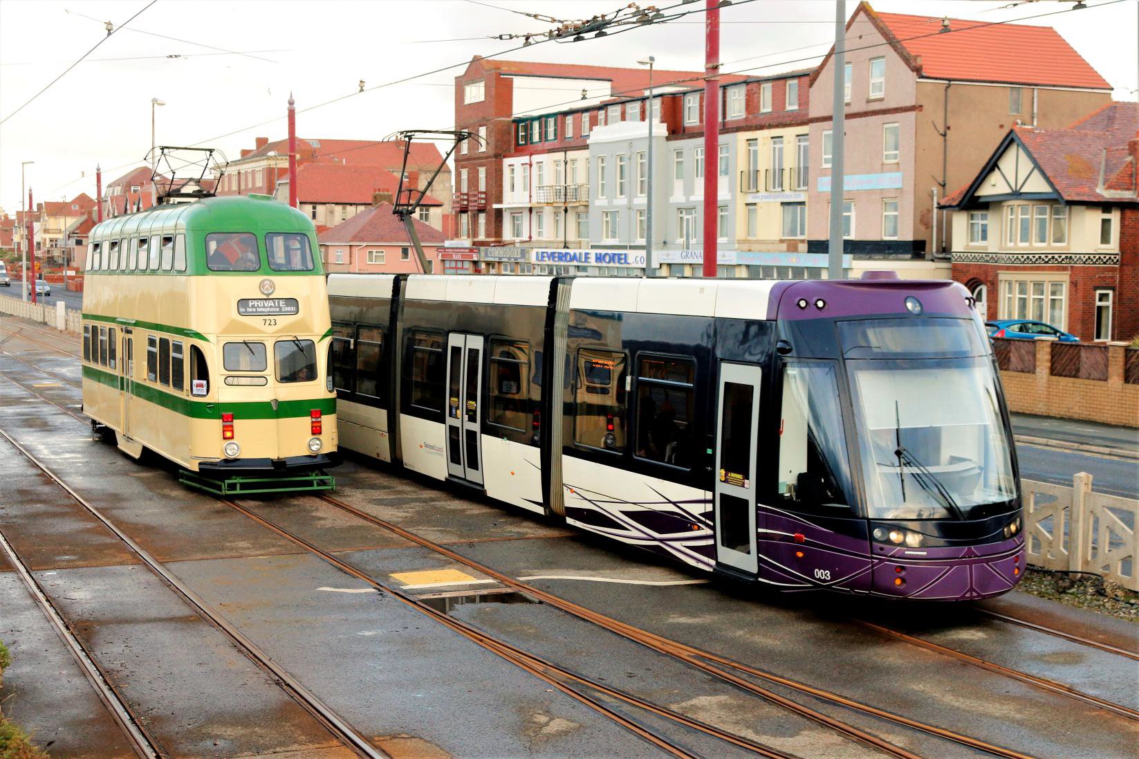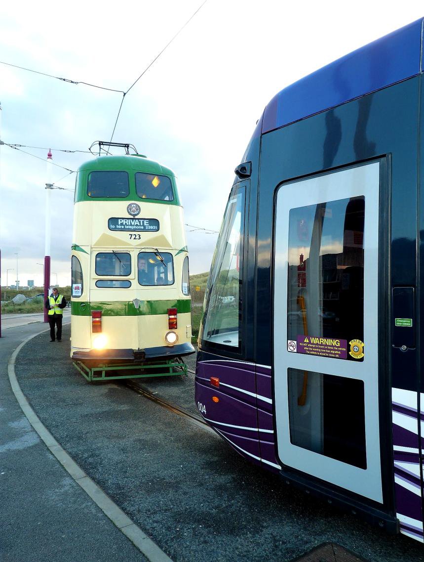 Old and new at Bispham with the OOU connection from the north to the centre road visible behind the trams.