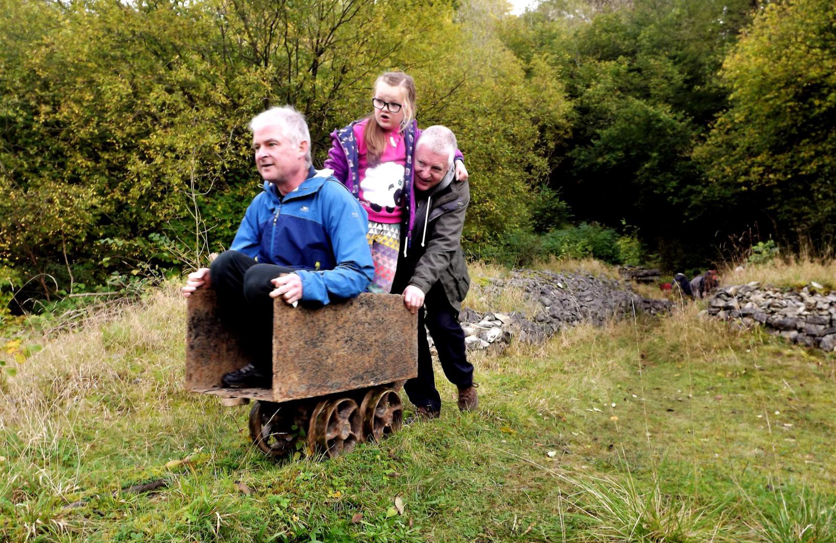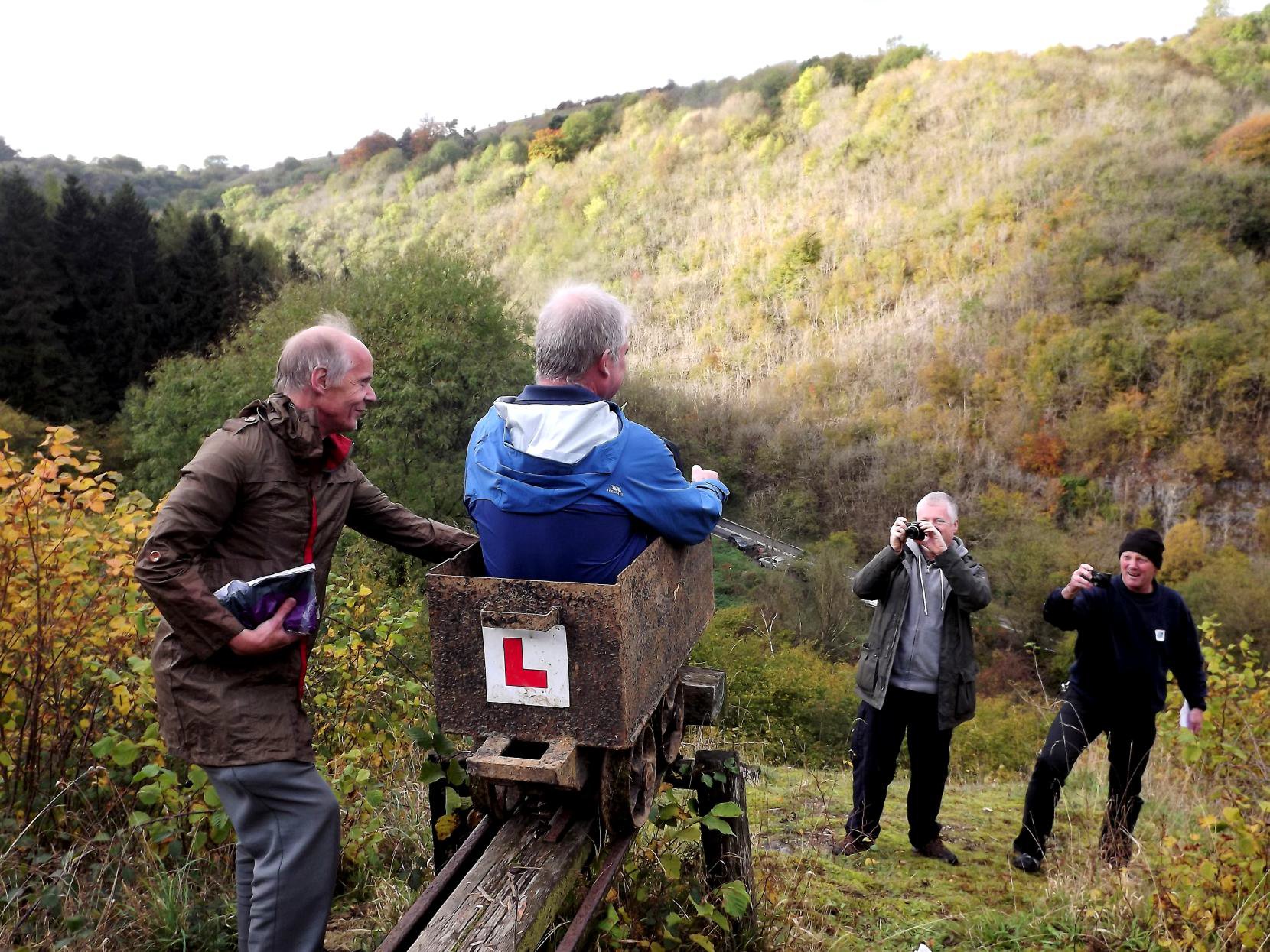 As the organiser of the fixture John Cameron has the honour (?) of the first trip onto the 'staith' on the mine spoil heap.