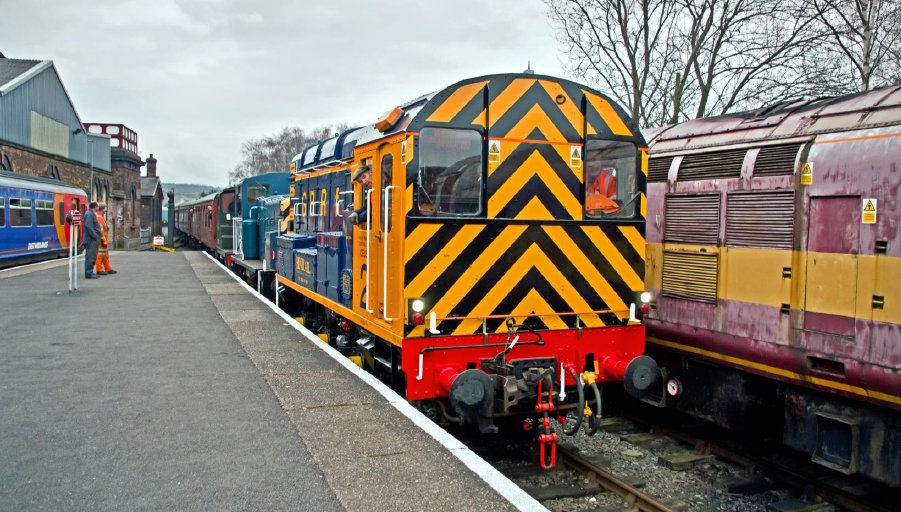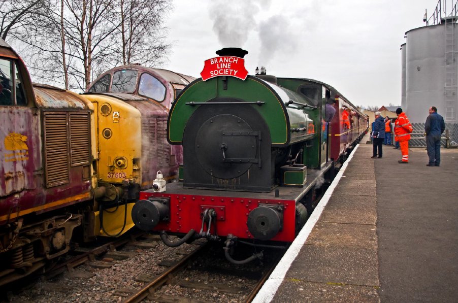 The tour train was prepared by a stalwart band from the Fixtures Team at Crewe just after 6am on the Saturday morning. EMT had kindly provided complimentary water and snacks that were distributed to passengers throughout the day. All the EMT crew who worked with us both on board and on the platforms during the day were very professional, extremely courteous and showed a genuine interest in making the tour the success that it was. The EMT Business Development Manager was on board from Uttoxeter to East Midlands Parkway to make sure all was well; it was! The train started and finished more or less on time (even waiting in Crewe for a few moments after booked departure time in the morning for a passenger off the late running overnight Scottish sleeper) and covered the lines as above. The private lines visited received large donations and did not disappoint as both sites provided variety and interest in different ways. The GCR(N) railway has two distinct areas, both of which were well covered - the old main line and the siding area. The immaculately turned out prototype HST was a big plus too. At Barrow Hill the highlight was steam and the incongruous site of a triple header of shunters plus of course the magnificent roundhouse. Overall a very interesting, varied and enjoyable variety of features in a single trip on one day with suitable breaks. There were a couple of 'firsts':