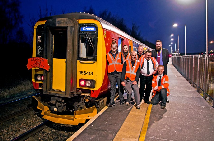 Your reporter joined the railtour at Stoke-on-Trent, Class '156' 156413, and formed the impression from the smiling faces that the 2¼-mile Up Goods Line from Grange Jn to Stoke North Jn had been traversed, and this was confirmed by the stewards. Shortly after departure, the tour entered Caverswall Up Goods Loop, thought to be a first for a passenger-carrying train; it had been OOU at the time of previous tours in recent years. The train was booked to run through it non-stop but instead waited (perhaps because we were slightly late) to allow the following service train to overtake with a 20-minute delay.