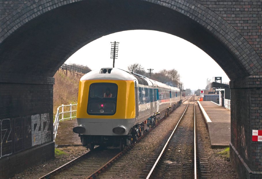CCR(N) special departs for Ruddington Fields. The large BLS blue headboard was on the prototype HST power car at the rear.