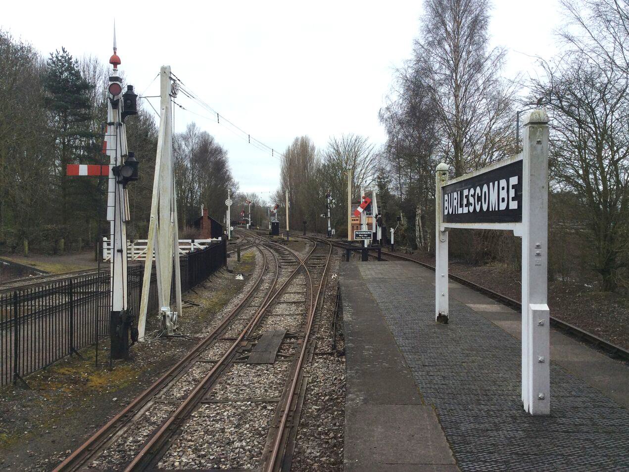 The mixed gauge looking towards Burlescombe platform and the standard/broad gauge transhipment shed.