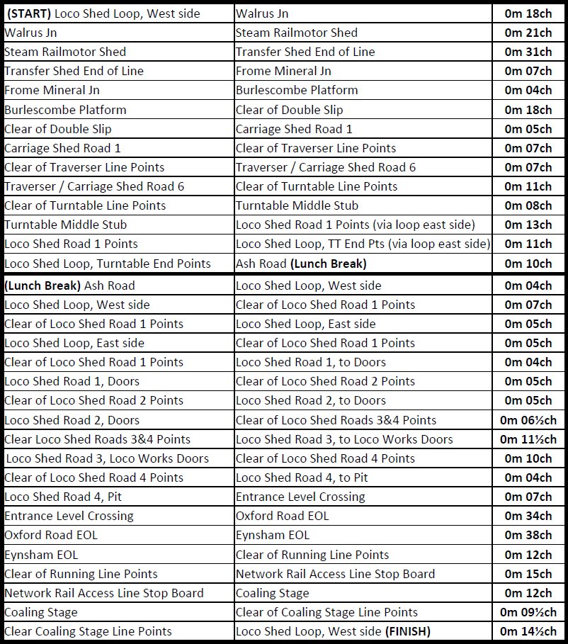 Our very enjoyable and sociable fixture expeditiously covered a considerable amount of track without fuss, largely due to the professionalism of the DRC staff and advanced preparation for the tour. Pointwork had been greased and foliage cleared the day before even to allow travel to the various buffer stops. Many thanks to all concerned at the DRC (well worth a visit on a public steam day http://goo.gl/ugarF adjacent to the mainline station) and particular thanks to the indefatigable Kev Adlam.