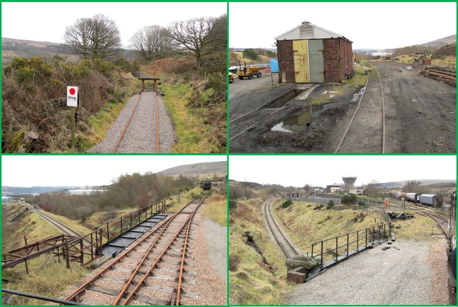 The tour visited Big Pit, gently compressing the loco's buffers against the end of line stops before dropping back a little for more photos and another posed headboard moment. The headboard spent most of the trip attached to the GER Saloon as neither loco has a bracket. As we descended from Big Pit, attention and discussion in the cab focused on the stock blocking the over bridge route and what could be moved for later on. The train reversed, requiring two staff to 'bar' the points across and much oil (these being the only points now without a ground frame), over the very rarely used bottom end of the loop, back onto the main line which had been re-commissioned just a week before. This was beyond a section of track only re-laid a fortnight earlier with significant layout alterations. Our tour was the first train over these reinstated sections that are so rarely used that even the driver who had been visiting the railway since he was a boy said that this was his first traversal! Down the hill we positively bowled along, probably occasionally reaching double digits before slowing for our fixer and 'Mobile Operations Manager' Alex to descend and use the newly installed ground frames.