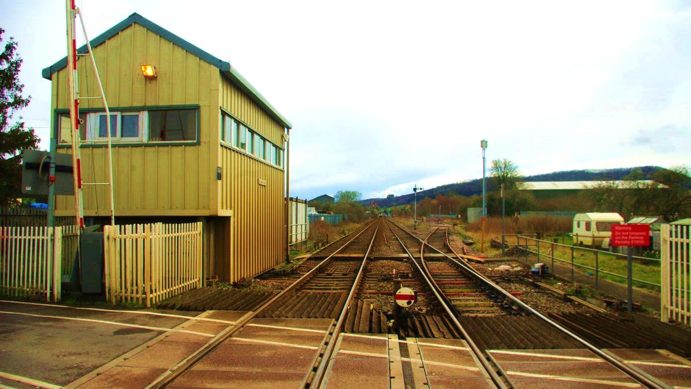 Craven Arms Crossing (formerly 'Long Lane Crossing') was the final visit. Sadly, its original life-expired timber structure was replaced by new plastic cladding in summer 2000, although the GWR equipment and frame remain in situ. The box is at a level crossing (which may be abolished) north of the station next to the facing crossover from the Down to Up lines used by trains to the Central Wales Line.