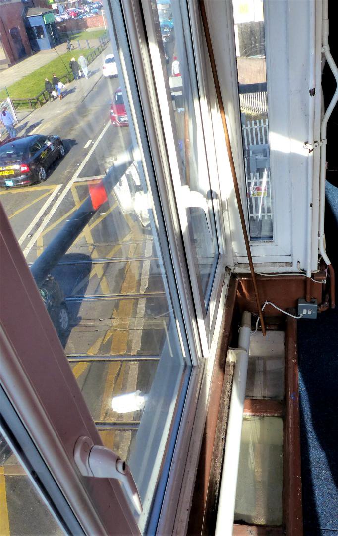 Above and left: The unusual floor glass panel at Redcar box to see pedestrians.