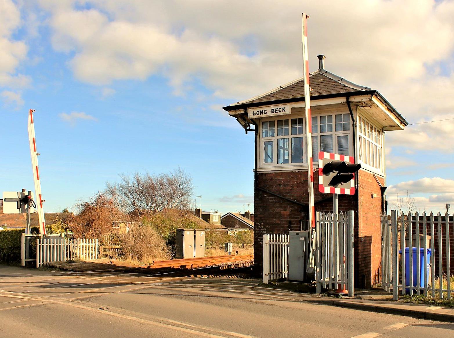 At Nunthorpe; the points at the Middlesbrough end are train operated, with a point indicator where a Down home signal would normally be. The layout is designed to allow trains to turn back in the Down platform without shunting between platforms unless there are consecutive Down trains, in which case the first arrival shunts to the Up platform via the Battersby end of the station. The level crossing barriers are (unusually these days) controlled by a gate wheel with the road warning lights controlled separately by buttons on the block shelf. The box is a 1903 NER type C2b. Due to the unusual hipped roof it is Grade II listed so cannot be demolished without the agreement of English Heritage. It has a McKenzie & Holland type 16 frame with tappet interlocking. In 1966 the box was reduced to 16 levers with 6 spare, a direction lever for acceptance of trains from Middlesbrough, a gate release lever and 2 wicket releases. This was almost certainly with the abolition of Nunthorpe East with singling of the line. Here the current Whitby and the then closed Guisborough (CA 31 Dec 1964) lines diverged. The line between Guisborough Jn (Middlesbrough) and Nunthorpe was singled from 26 Jan 1986.