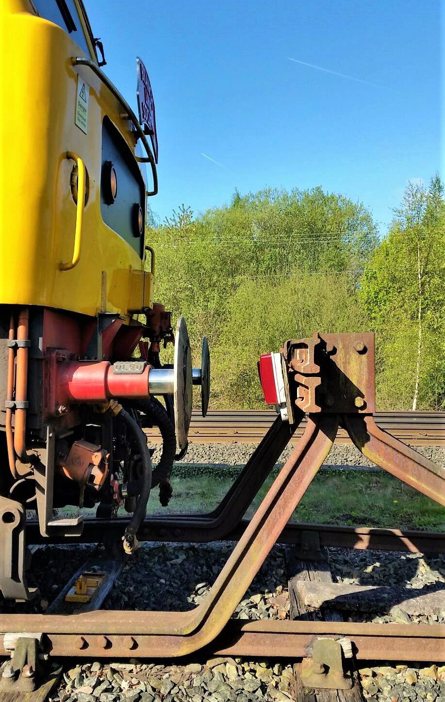 Those of a traction bent then bailed out leaving the track cognoscenti to sample some esoteric morsels around the station area beginning with a reversal over the trailing crossover nearest the station and down the carriage washer road, threading the silent brushes of the wash plant and tottering along the rusty metals until the ATW pilot man decided we had gone as far as prudent. The train stopped well past the station beyond the large stainless steel footbridge overhead. Although short of the buffers the tracks looked very rarely used and it could only be described as sensible.[Below: © Simon Mortimer 2017]