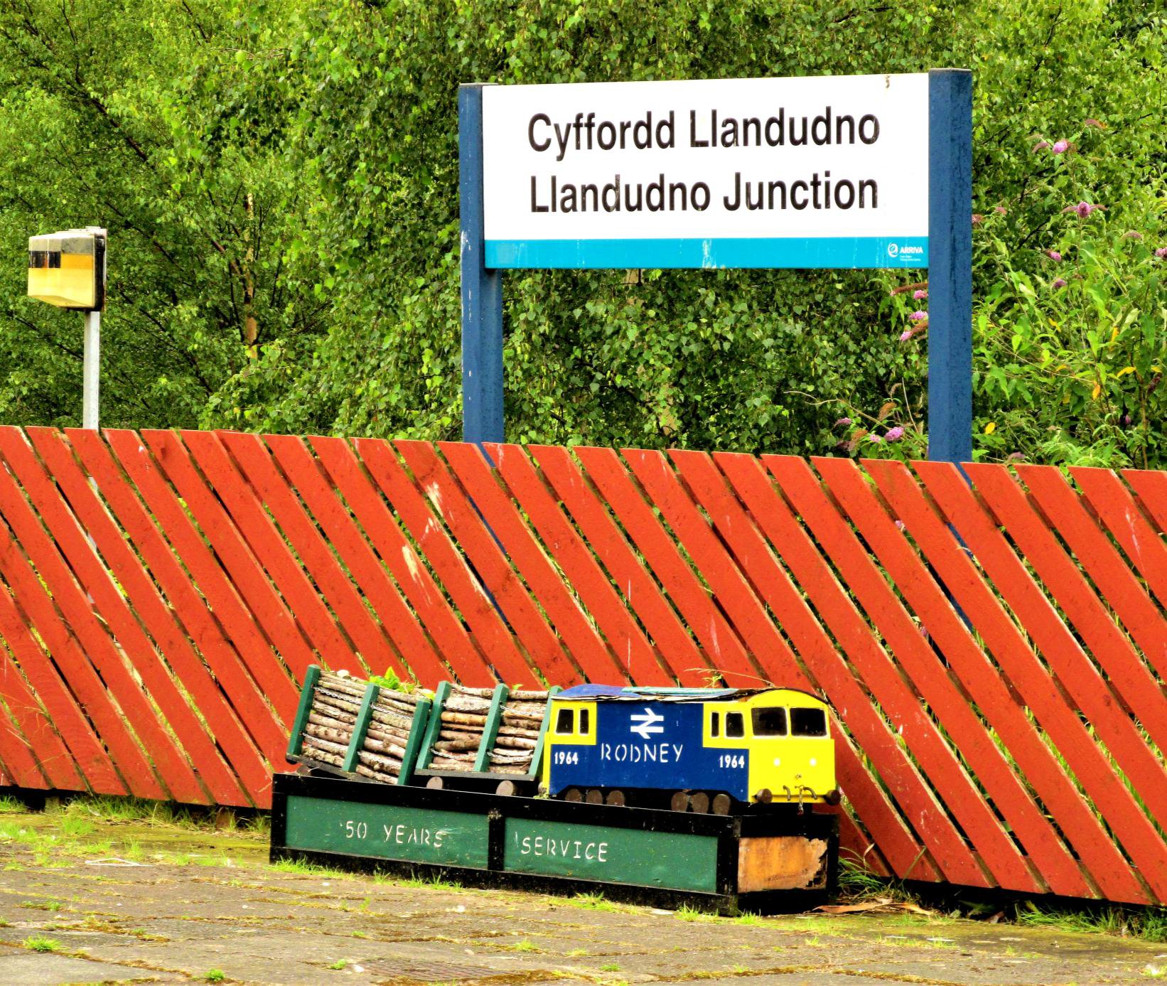Next up was Rhyl Down Main... except it wasn't.... we had the position 1 feather and trundled through P2 like every other passenger train here. A steward's enquiry revealed the points at the west end had been damaged recently and (with resignalling) are not likely to be repaired.... At Abergele & Pensarn we sampled at speed (blink and you'll miss it) the new ultra wide Bicester North type Down platform which sits over the old platform loop. It has simply been extended out to the Down Main recently, so that's one less thing to worry about. Llandudno Junction might have appeared quite regulation but actually arriving into P4 is relatively unusual, most trains are concentrated on the island platforms and P4 only sees a few trains a day when a coincidence of services forces the DMU from Blaenau Ffestiniog to stay over and precludes the typical looping. But, where was Rodney? No, not the gypsy rover (only four TOCs left to do) driver sat adjacent but the wooden locomotive and coach of that name which had sat on P4 for years... gradually decomposing... (again no parallels with anyone adjacent)... it was gone!
