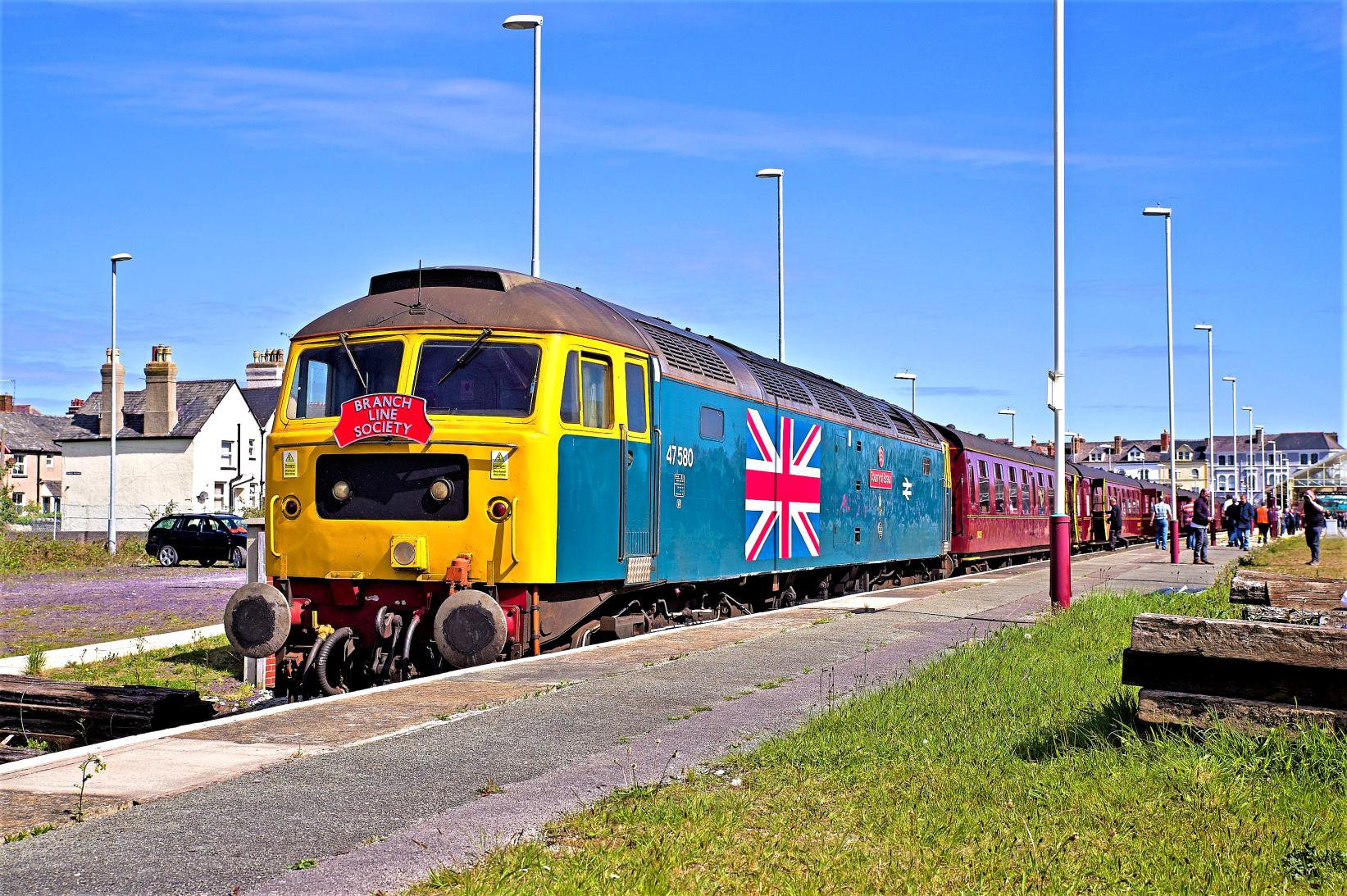 Thrashing back across the island we repeated our non-stop run through Bangor this time on the now rare Up Main (middle line) and must have made an impressive sight bursting out of one tunnel and plunging into the other beyond the platforms. After a spirited run along the North Wales Coast the train stopped expectantly at Holywell Jn Up Home awaiting the signal for the Up Loop, only to see the board come off for the Main...the 47 threw some clag into the blue sky and we pondered the loop as we passed. Then the message that the MOM who had come to effect this move was very apologetic but a crucial special key was missing for the signalbox, ground frame or some other mission critical piece of kit.... This was a great disappointment for the organiser too in view of the amount of time and effort put into the move by many - both Holywell Jn Loops had even been re-fettled specially.