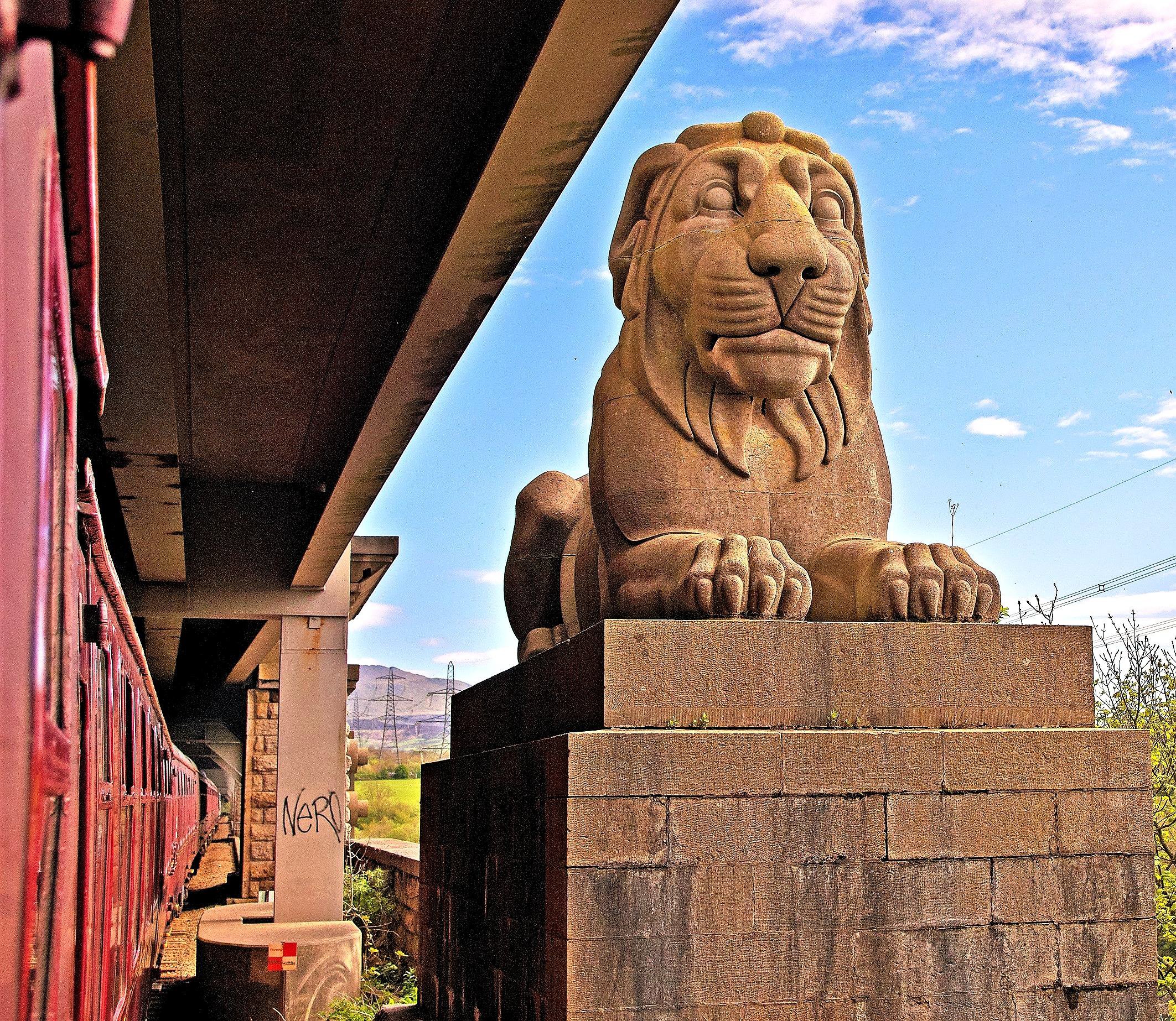 Railway lions guarding the Britannia Bridge : above and below. [both © Geoff Plumb]