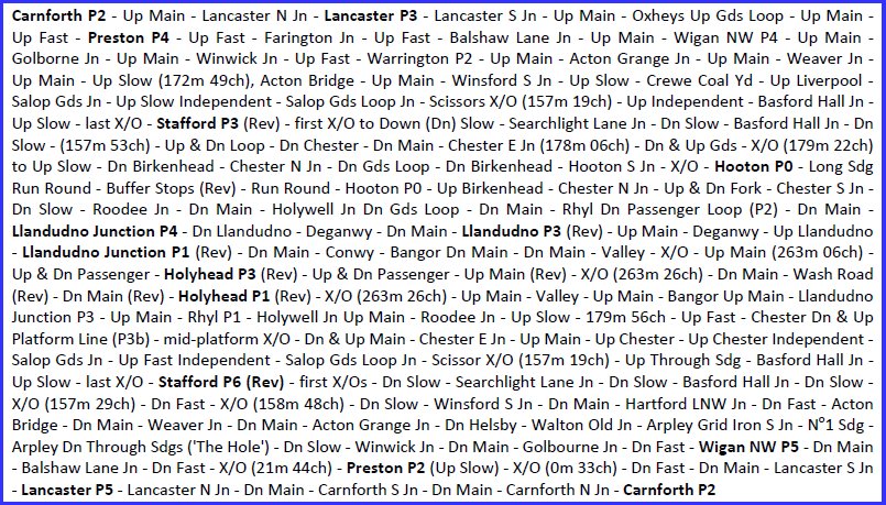 Postscript 2: The report above refers to a train pulling out of Holyhead every weekday morning around 05.30 with a full catering crew cooking breakfast. However, this is not quite correct. The Cardiff-based chef joins at Rhyl following an overnight stay in a hotel. He/she leaves the train there the previous evening to have a long enough statutory break. Sunday evenings, this involves travelling from Cardiff on a passenger train. On Fridays the chef leaves the train at Chester returning passenger to Cardiff. The other catering staff are based in North Wales and tend to leave and join the train nearest to where they live. However, there should always be at least one on duty throughout. Despite what the system shows, the evening arrival at Holyhead is generally in P3. Holyhead platform numbers are unreliable on Realtime Trains etc and in fact Virgin Trains usually tend to use P1 for example.