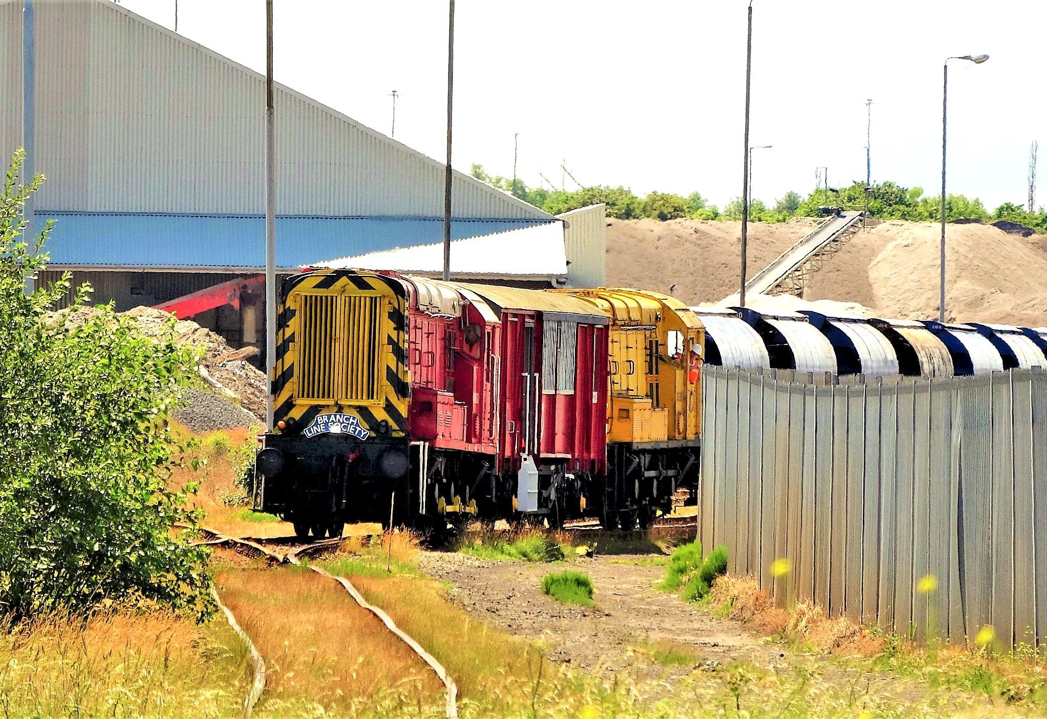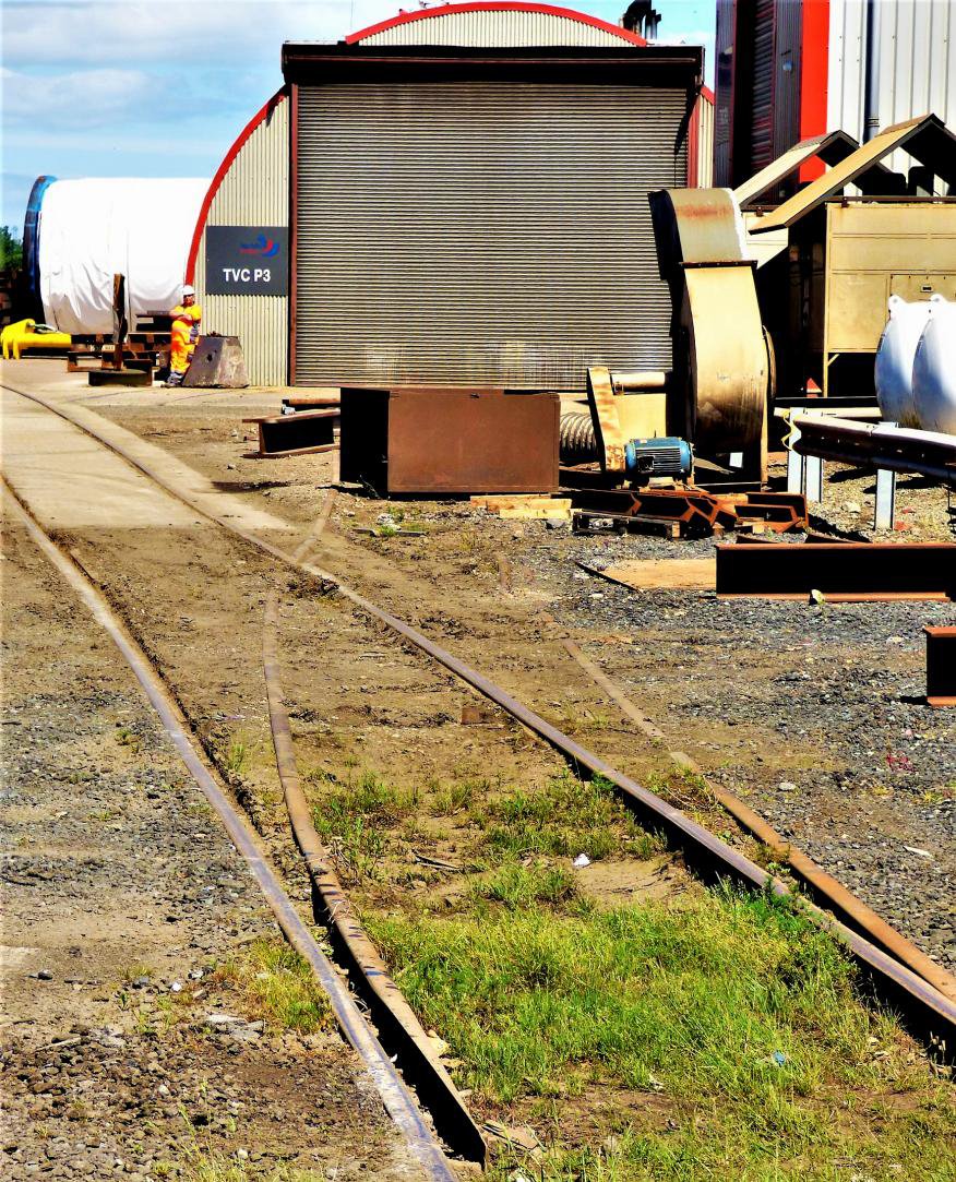 Next was a run under the Metz Bridge, right up to the NR boundary (at MP 19 from Darlington) before another reversal and the last branch of the tour, the North Sea Supply Base Wharf. This runs on the quayside serving five ship berths on the River Tees. Again, driver Dave obliged by leading us as far along the branch as possible, only giving up where the track disappeared into the gravel! The last rail freight traffic on this branch had been pipe traffic 18 months previously. Our tours were almost certainly the first ever passenger trains to run north of Depot Road level crossing since the line opened in December 1830. The intervening period of 186½ years may constitute a world record for the length of time between a line opening and seeing its first passenger train and it was considered to be the highlight of this excellent tour by many! The trains were also a great surprise to some of the locals out for a Sunday cycle or walk. The Dent's Wharf branch was not traversed; it was blocked and OOU, as could clearly be seen passing its junction.