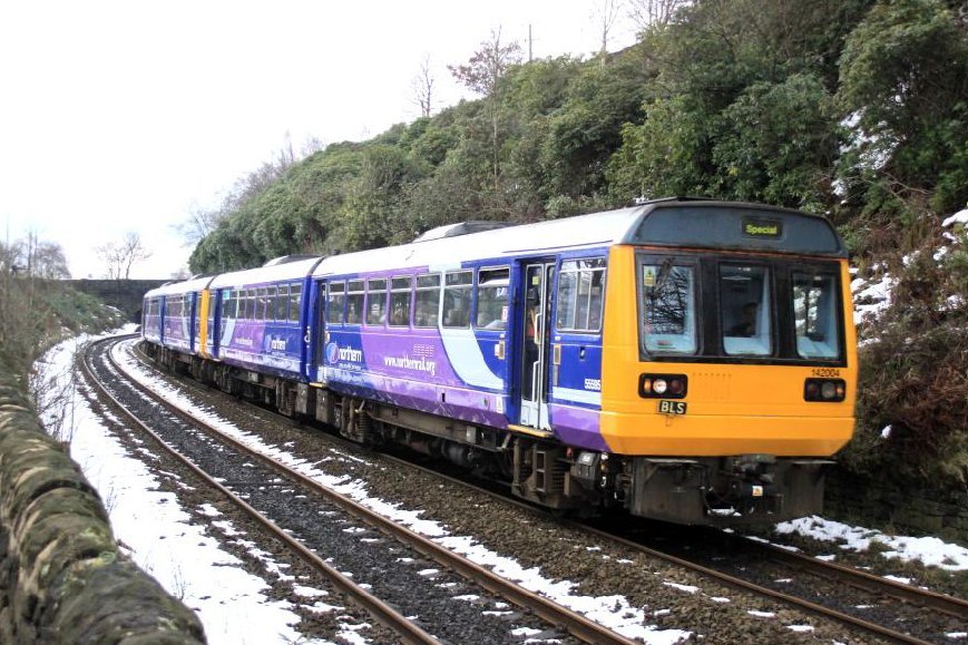 142004 and 142001 passing Greenfield on the Northern Tracker railtour on Sunday 6th March 2016. Northern Rail is just one of the growing number of TOCs that we work with. [© Russ Clarke 2016]
