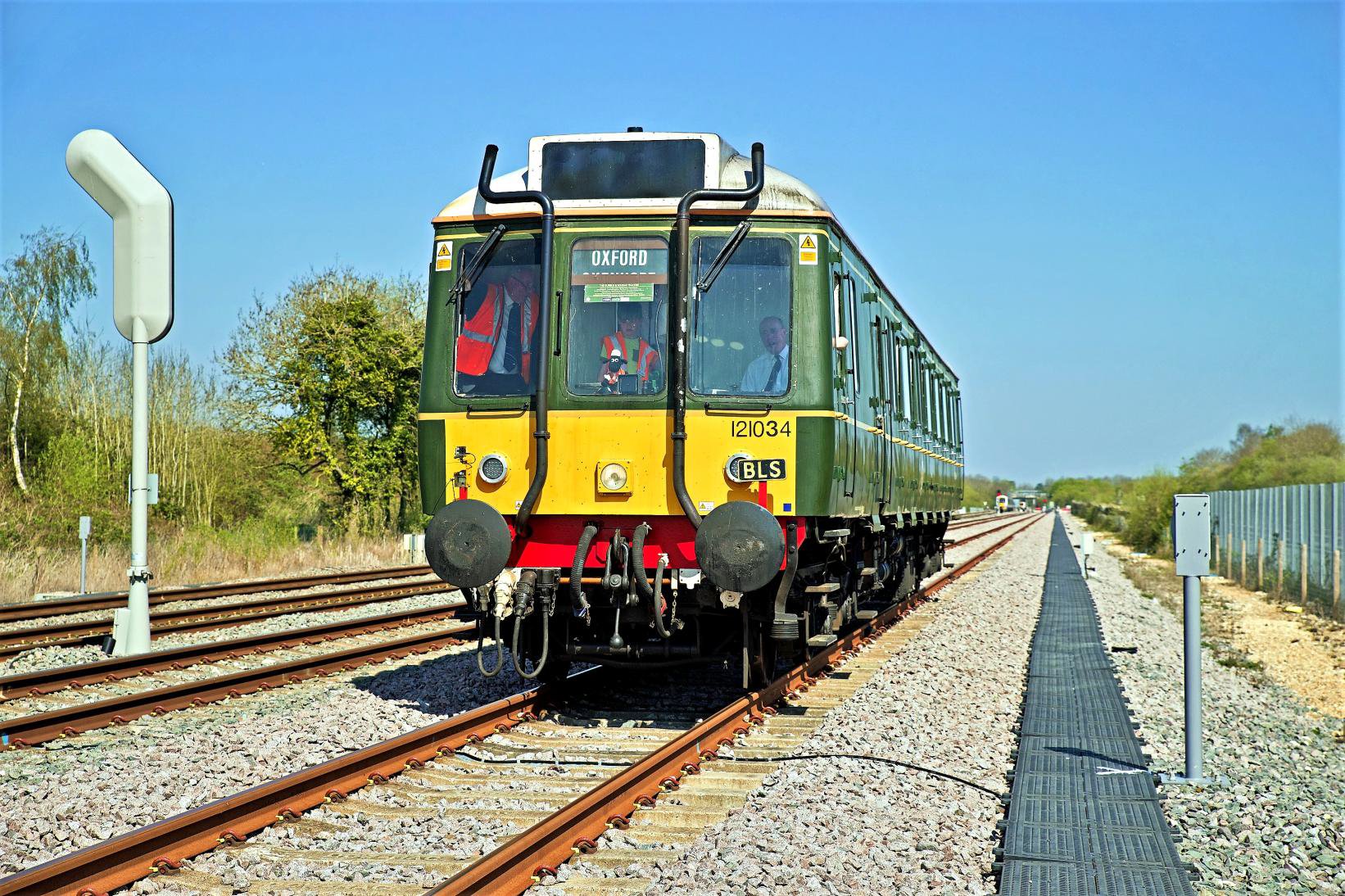 On 9th April 2017, Chiltern Railway's 121034 stands in Bicester MoD Goods Loop on our Bubble and Squeak Tracker railtour. [© Geoff Plumb]